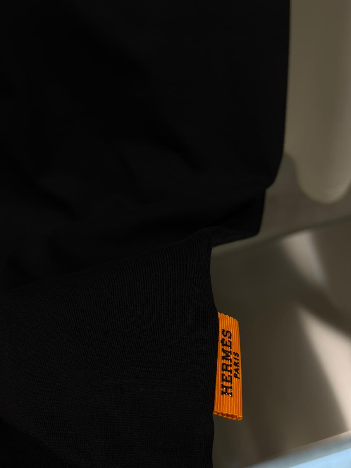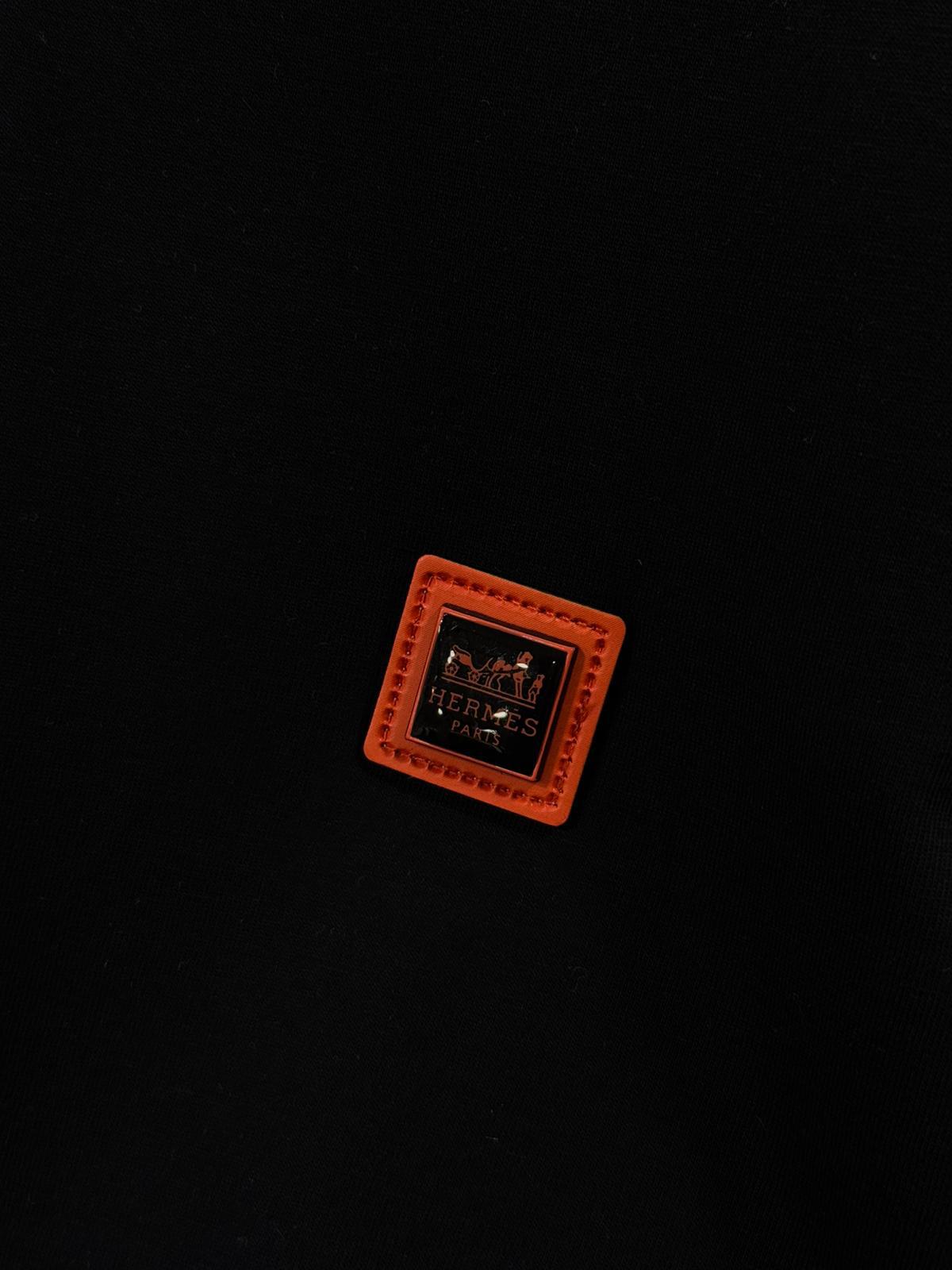 Black hermes paris orange logo cotton tshirt